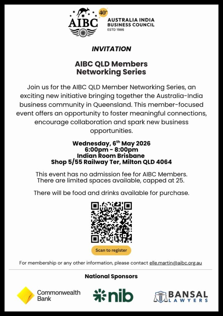 We’re pleased to introduce the AIBC Queensland Member Networking Series – a new initiative designed to strengthen engagement and foster meaningful connections across the Australia-India business community.